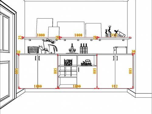 柜身通常采用18mm面板,臺(tái)面通常采用25mm面板,背板通常采用9mm面板。